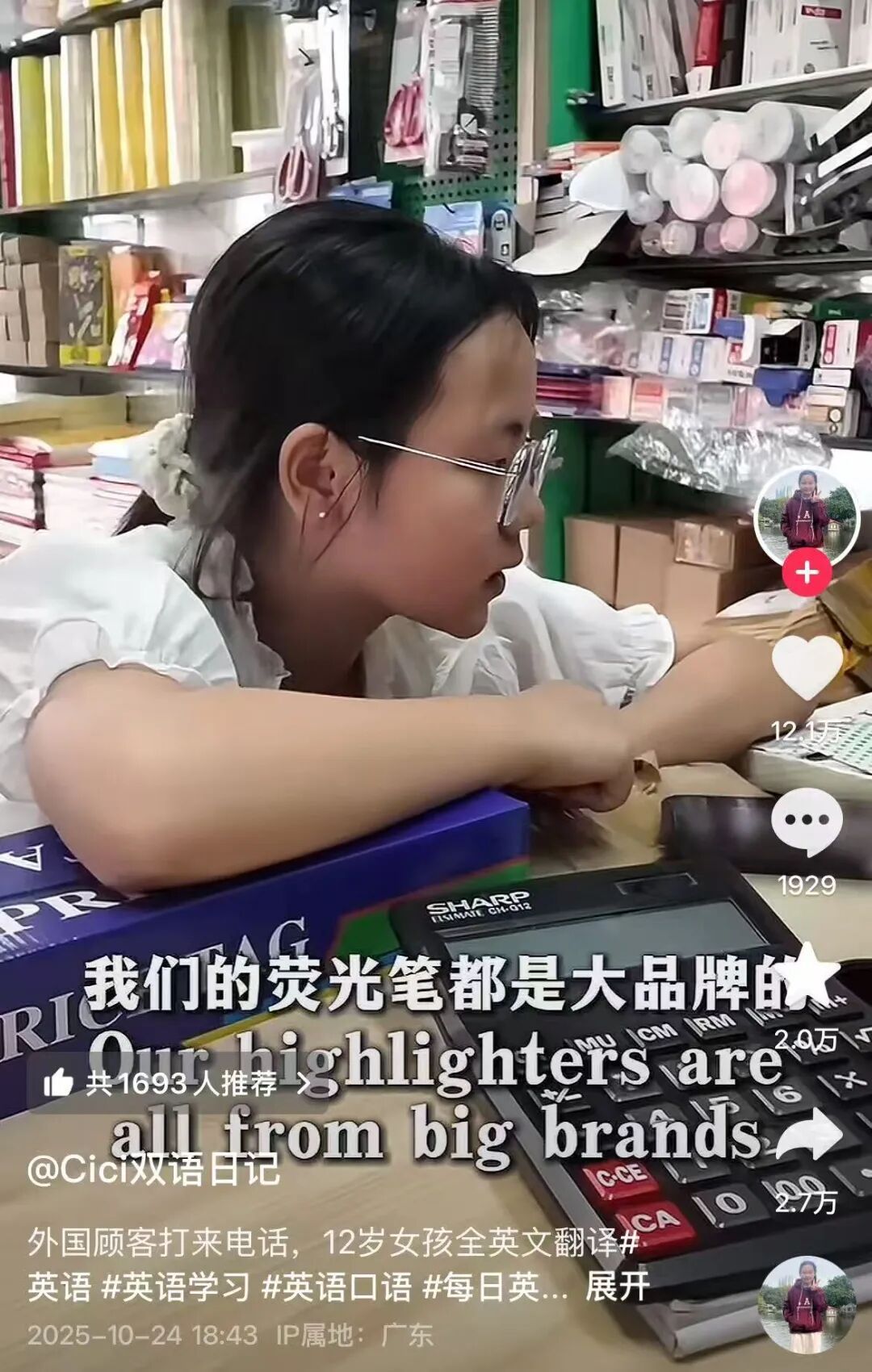 女孩妈妈马女士告诉记者,他们一家是在广州打拼的潮汕人,她和丈夫都不懂英语,女儿从2024年8月开始陆续帮她卖货,目前已卖了10多万元,把之前报班学英语的学费都赚回来了。